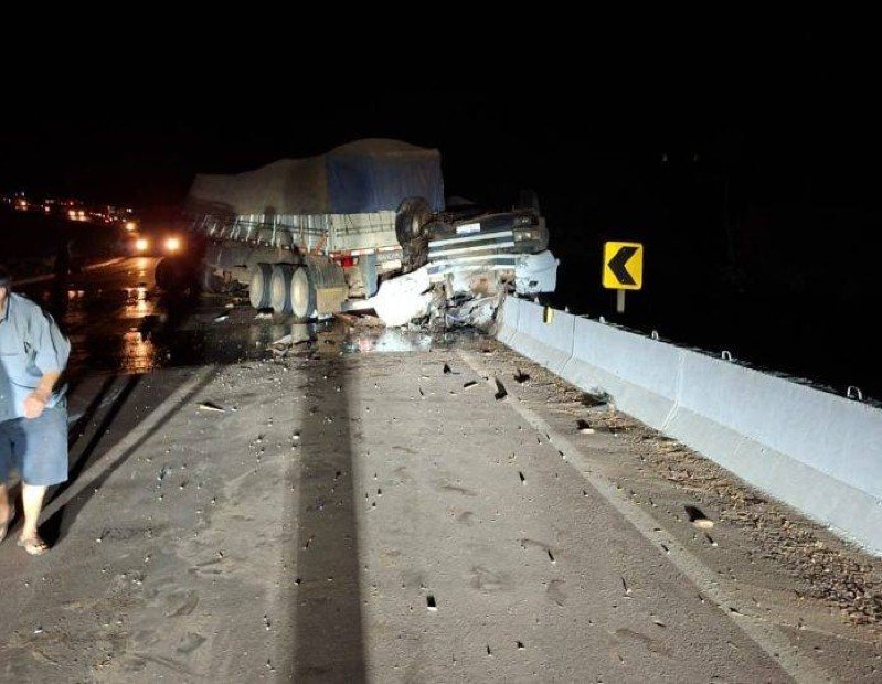 HomeAcidenteAcidente entre duas carretas e uma picape deixa um morto e dois...
