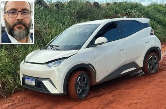 Dentro do veículo, a agenda da vítima estava queimada sobre o banco do motorista, e vários objetos estavam espalhados pelo interior do carro.