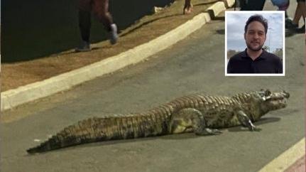 O “jacaré celebridade” do Parque das Águas resolveu passear fora da lagoa, gerando um volume considerável de mensagens e vídeos nas redes sociais. O animal de grande porte chegou a atravessar a pista de ciclismo, sendo cutucado por curiosos com um cone, o que representava risco ataque.
