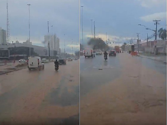 Os pontos mais críticos foram registrados nas imediações do Pantanal Shopping, onde a água acumulada formou grandes poças, obrigando motoristas e motociclistas a realizarem manobras arriscadas. A lama, vinda dos canteiros de obras onde a terra está exposta, cobriu faixas inteiras da avenida, gerando lentidão no trânsito sentido Centro-CPA.