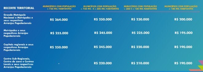 Para famílias das faixas 1 e 2, com renda de até R$ 4.400 mensais, o limite do valor do imóvel passa a variar entre R$ 190 mil e R$ 264 mil, a depender da localidade. Veja a tabela abaixo: