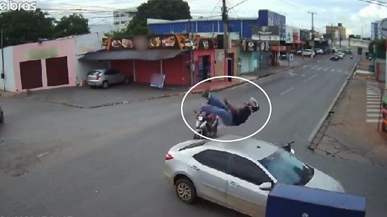 Um motociclista de 22 anos, cuja identidade não foi revelada, teve o corpo arremessado ao atingir um Corolla em cruzamento da Avenida Alzira Santana, em Várzea Grande/MT, nesta quarta-feira (14). Imagens da ocorrência mostram o piloto em alta velocidade.