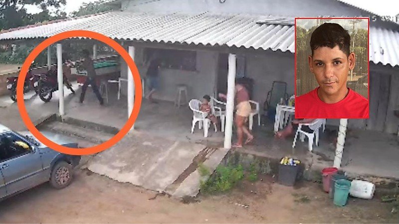 Imagens de câmeras de segurança registraram o exato momento em que o vigia Adriano Queiroz de Oliveira, de 34 anos, foi morto na tarde de domingo (18 de janeiro) em um bar localizado na zona rural de Novo Mundo (785 de km de Cuiabá).