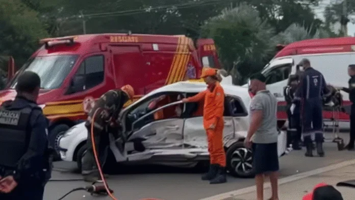 Um motorista de 43 anos avançou o sinal vermelho e bateu com uma caminhonete em um carro de passeio neste domingo (28), em Cuiabá. No veículo atingido estavam um idoso de 77 anos e duas mulheres, de 68 e 50 anos. Duas vítimas ficaram presas às ferragens, e outra foi arremessada para o canteiro central.