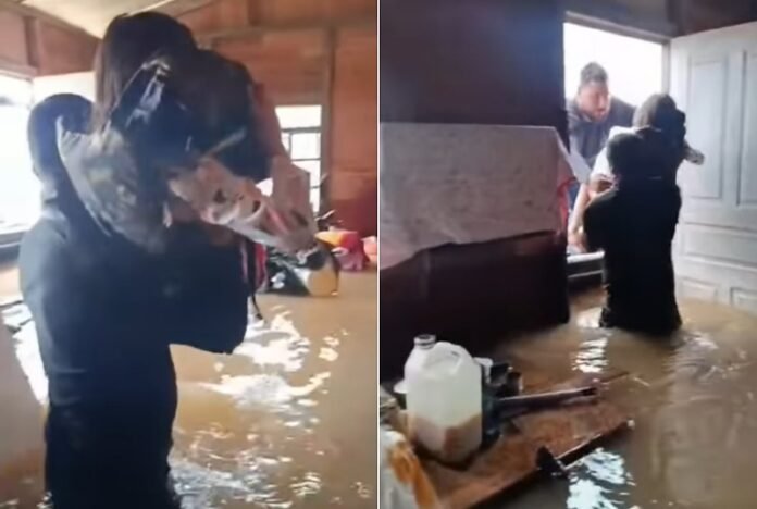 Moradores também registraram os estragos. Nas imagens é possível ver um homem resgastando uma pessoa de uma casa alagada.