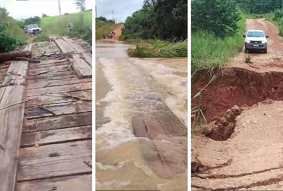 Pelo menos três pontes ficaram gravemente danificadas em decorrência da tempestade que atingiu o distrito de Nova União, na cidade de Cotriguaçu (957 km de Cuiabá), nessa terça-feira (20). Algumas das pontes passam pela rodovia estadual MT-170. Por causa disso, as equipes de Defesa Civil e Assistência Social deslocadas para a região para prestar auxílio aos moradores precisam se deslocar por rotas alternativas, em condições muito ruins.