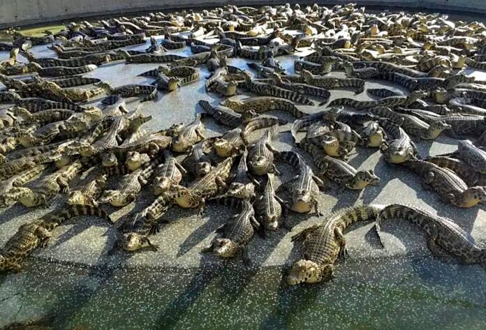 A criação de jacarés para o abate é uma prática permitida no Brasil, mas exige licenças ambientais específicas. O óleo é um sub produto de animais de criadouros, e é encontrado na gordura das vísceras desses animais, que, em geral, são descartadas.