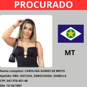 Carolina Gomes de Brito, conhecida como DBX, Katleia, Debochada ou Isabelle, tem 38 anos e é apontada como liderança de uma das facções criminosas mais atuantes em Mato Grosso. Ela responde a pelo menos três ações criminais por liderar o tráfico de drogas em Tangará da Serra (a 242 km de Cuiabá) e possui envolvimento em crimes relacionados à organização criminosa.
