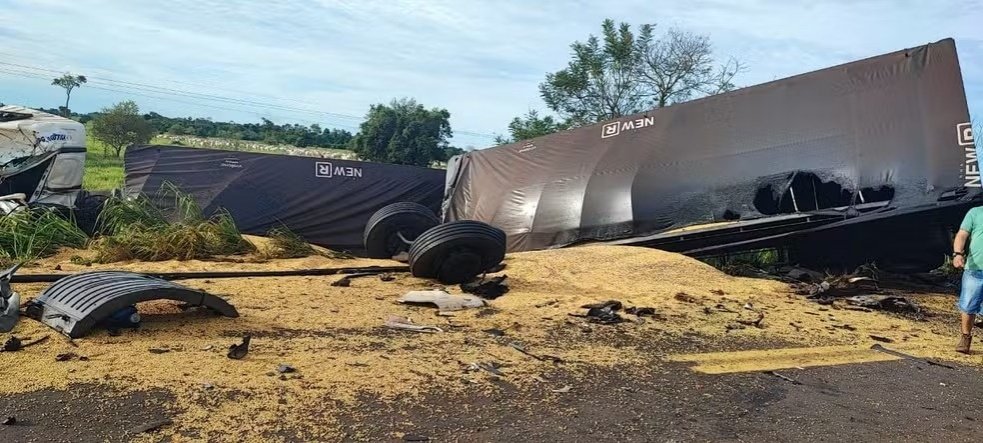 Em um certo momento, ocorreu a colisão entre carretas próximo à Fazenda Santa Ilidia. Um dos veículos pegou fogo e a carga ficou espalhada pela rodovia.