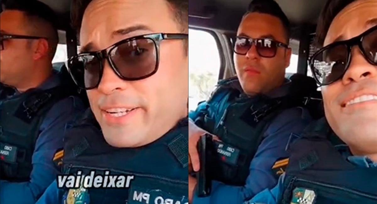 Dentro da viatura, os militares cantam que “o menino de vovó vai deixar vovó”. A música é da cantora pernambucana Mãe Nininha de Oyá e viralizou como trilha sonora de ações policiais em todo o país.