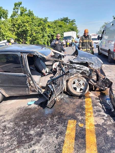 O acidente foi registrado por volta das 7h30 e mobilizou equipes do Corpo de Bombeiros, do Serviço de Atendimento Móvel de Urgência (Samu) e da aeronave do Centro Integrado de Operações Aéreas (Ciopaer). Duas vítimas ficaram presas às ferragens e precisaram ser desencarceradas. Um dos feridos, em estado grave, foi encaminhado de helicóptero para uma unidade hospitalar.