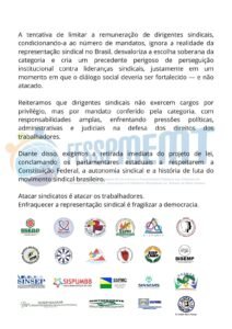 A proposta altera regras da Lei Complementar nº 04/1990 e prevê restrições ao afastamento de dirigentes sindicais, o que, na avaliação da federação, representa um grave retrocesso, além de interferir diretamente na liberdade sindical e no direito de organização dos trabalhadores.