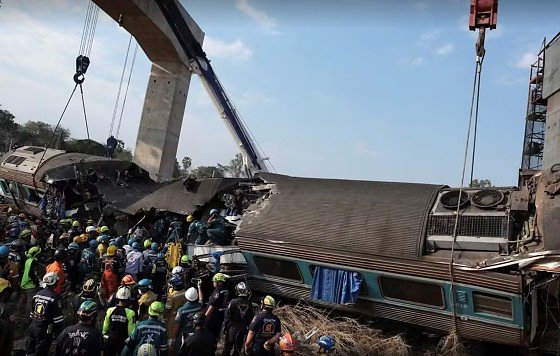 Um guindaste de construção caiu sobre um trem em movimento na Tailândia nesta quarta-feira (14). Trinta e duas pessoas morreram, e dezenas ficaram feridas, segundo autoridades locais.