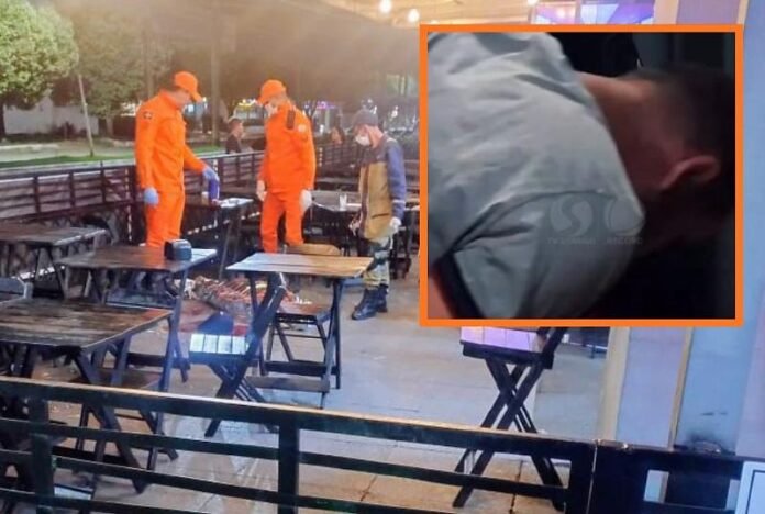O crime foi filmado por uma câmera de segurança Nas imagens, é possível ver que a vítima estava sentada em um bar, conversando com um outro homem, quando o atirador se aproximou pela calçada, sacou a arma e atirou diversas vezes.