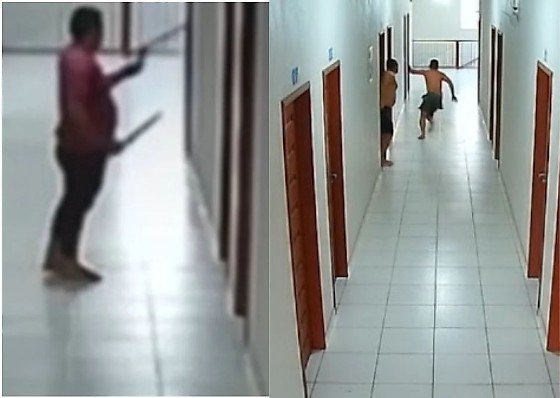 Homem é atacado com facão dentro de quarto de hotel em MT; Veja vídeo