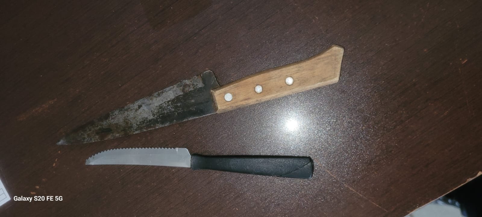 Durante a abordagem e busca pessoal, os agentes localizaram duas facas em posse do suspeito. Diante da situação, foi dada voz de prisão. A vítima também se encontrava no local e relatou aos guardas que trabalha no posto de combustível e é esposa do acusado.
