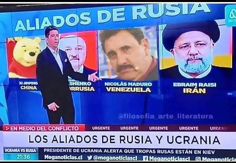 Na montagem, além de Maduro ser substituído por Ratinho, o presidente da China, Xi Jinping, aparece representado pelo personagem Ursinho Pooh. Já na exibição original, as imagens dos presidentes aparecem corretamente ao lado de Ebrahim Raisi, então presidente do Irã, e Alexander Lukashenko, presidente da Bielorrússia.
