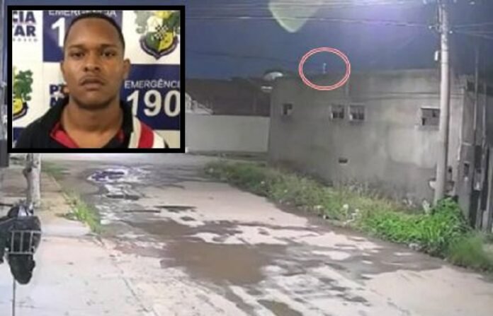 Imagens de uma câmera de segurança flagraram o momento em que o homem sobe no telhado para tentar driblar os policiais e, em seguida, é atingido a tiros por um deles . A polícia disse que o suspeito iniciou o confronto ao atirar contra os agentes.
