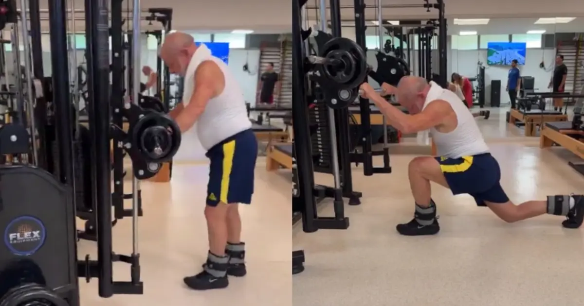 Na gravação, o presidente aparece realizando exercícios para panturrilhas e quadríceps, chamando atenção pela desenvoltura aos 80 anos.