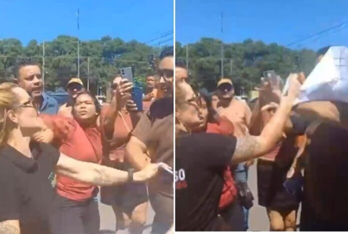 Vídeos que circulam nas redes sociais mostram momentos da confusão. Em uma das gravações, é possível ver o momento em que a esposa do vereador agride o jornalista com um tapa na mão dele.