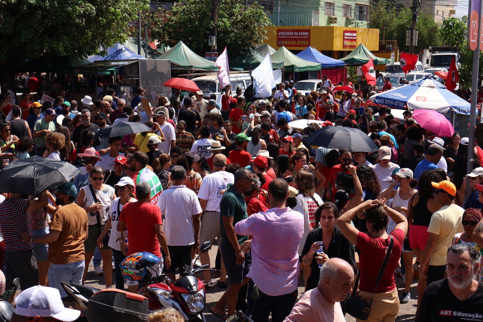 Manifestantes realizaram um ato na manhã deste domingo (21), em Cuiabá, contra a Proposta de Emenda à Constituição (PEC) da Blindagem, que dificulta a abertura de processos criminais contra parlamentares, e contra o projeto que anistia condenados pelo 8 de Janeiro.