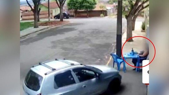Câmeras de segurança registraram o momento em que uma mulher, 26, foi atingida por um carro enquanto estava sentada em uma calçada, em frente a um bar. O veículo era conduzido pelo marido da vítima que, segundo a polícia, cometeu o crime propositalmente. O caso aconteceu em Lupionópolis, no norte do Paraná. No vídeo, é possível perceber que a mulher está sentada em uma cadeira, com uma garrafa em cima de uma mesa.