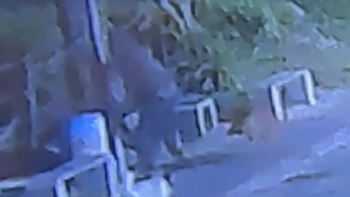 No registro, um homem se aproxima da vítima, aparentando verificar se ela estava dormindo, e em seguida desfere vários golpes na cabeça.