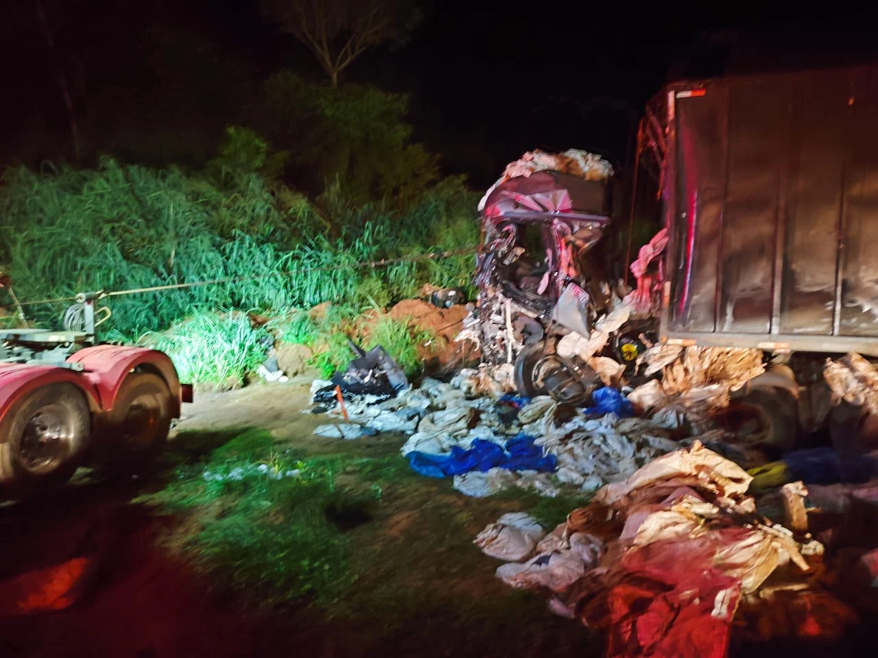 O Corpo de Bombeiros Militar (CBM) foi acionado por volta das 19h37 para atender a ocorrência. A equipe de Resgate e Salvamento da 13ª Companhia Independente Bombeiro Militar (CIBM) de Lucas do Rio Verde constatou que o motorista de uma das carretas estava preso às ferragens.