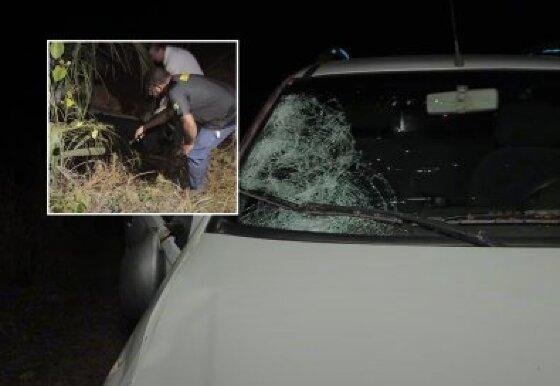 O motorista não conseguiu frear o veículo e atropelou o homem. Com o impacto, ele foi arremessado e caiu às margens da rodovia.