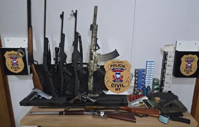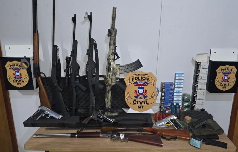 As ordens judiciais foram expedidas pela Justiça com base em investigações da Delegacia de Tapurah e resultaram na apreensão de 11 armas de fogo de diferentes calibres e mais de 2.200 munições.