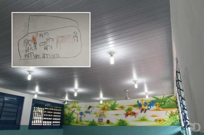 Posteriormente, o aluno passou por atendimento com uma profissional da área da neuropsicopedagogia, que já o acompanha em consultas regulares. Durante a sessão, foi proposto que a criança desenhasse o que havia acontecido. O resultado trouxe a figura da professora praticando agressões.