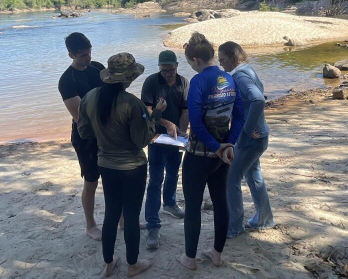 São coletadas amostras para análise microbiológica e medido o pH. As amostras são acondicionadas em caixas térmicas e enviadas para análise no Laboratório da Sema, em Cuiabá, onde são processadas. Esse processo vai se repetir uma vez por semana, durante 5 semanas.