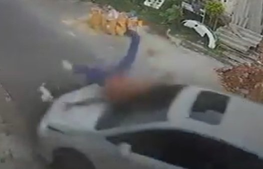 Depois das agressões, ela declarou que entrou em seu veículo para deixar o local. Nesse momento, o homem teria parado a motocicleta em frente ao carro, quando ela arrancou e o atingiu.