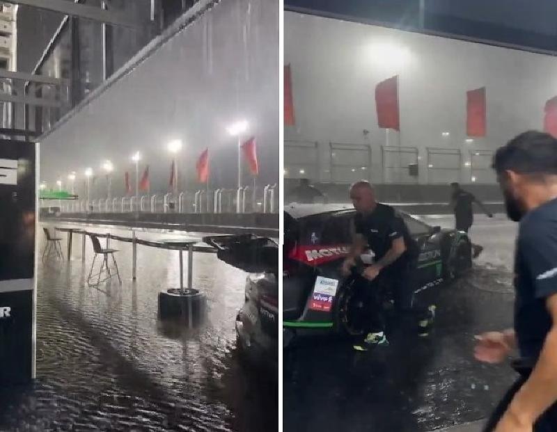 Minutos após o fim da classificação noturna da 10ª etapa da Stock Car, uma chuva forte começou a cair no Autódromo Internacional de Mato Grosso na noite desta sexta-feira, 14 de novembro. A mudança repentina no tempo surpreendeu equipes, pilotos e profissionais que ainda trabalhavam na área dos boxes e no paddock.