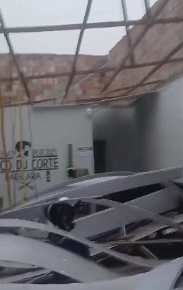 Vídeos mostram a destruição provocada pela chuva em Santo Antônio de Leverger (30 km de Cuiabá) na tarde deste domingo (28). Nas gravações é possível ver um estabelecimento completamente destelhado pela força do vento e estruturas que cederam sobre carros.